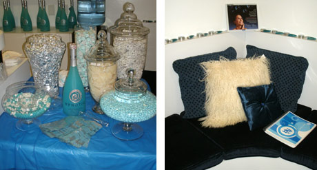 Inside the Spa, the many services were offered as well as complimentary cocktails and treats sponsored by Hpnotiq liquor. Other companies were also located inside, including Platinum Image Spa, the semi-permanent eye lash spa, located on Melrose Ave. in Los Angeles. The site offers facials, body scrubs, manicures, waxing and makeup lessons. Hair by Arpie also had a presence inside, specializing in color, cuts, styling and Brazilian blowouts. (www.hairbyarpie.com)