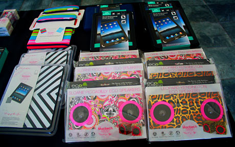 Fashionation, owned by Merkury Innovations LLC, has taken iPod and tech accessories to the next level by uniting the pioneering technology of Merkury Innovations, and the trend based eye of the creative team to create a stylish line of fashion forward iPod and technology accessories fit for any fashionista. The speakers are made of at least 70% recycled materials (the Eco Speakers are made from recycled cardboard and the Pyramid Speakers are made from recycled plastic), have a universal plug in (they can be used with any computer, radio, mp3 player, etc), and run without batteries—they get their power from whatever they are plugged into.