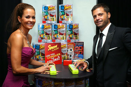 Dancing With the Stars host Brooke Burke and her French, Baywatch alum husband David Charvet joked about how he used to play scrabble to improve his spelling when he was first learning to speak English while they were picking up the new Hasbro Simon Flash for their kids.