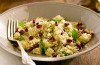 Score 1–2 fresh pomegranates and place in a bowl of water. Break open the pomegranates under water to free the arils (seed sacs). The arils will sink to the bottom of the bowl and the membrane will float to the top. Sieve and put the arils in a separate bowl. Reserve 1 cup of the arils from fruit and set aside. (Refrigerate or freeze remaining arils for another use.) Heat the oil in a medium saucepan over medium heat. Stir in the garlic and onion; sauté until lightly browned. Mix quinoa into the saucepan and cover with water. Season with salt and pepper. Bring the mixture to a boil. Cover, reduce heat and simmer 20 minutes. Remove quinoa from saucepan and spread out over sheet tray and let it cool (it stops the cooking process). Mix in the mint, pomegranate arils and goat cheese. Season with salt, pepper and some olive oil to taste. Serve.