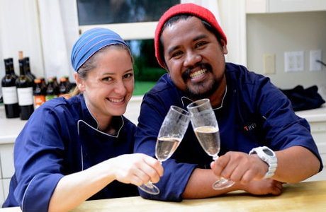 Brooke and Sheldon celebrate for making it to the finale of Top Chef Seattle. Photo courtesy of BravoTV.com