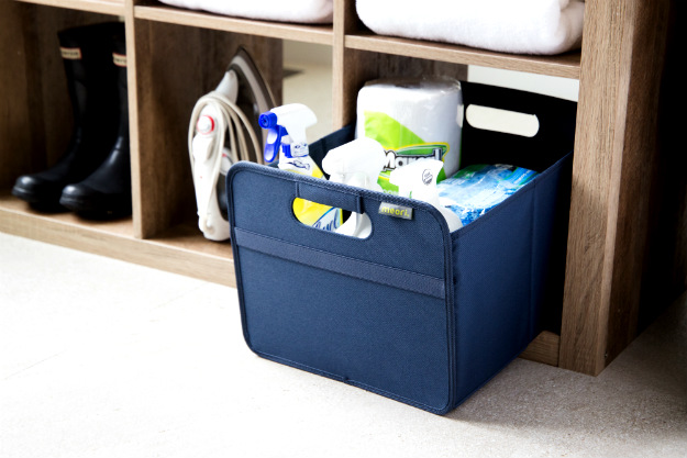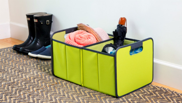 The attractive foldable storage boxes by meori have it all. The sturdy-yet-lightweight design can carry or store up to 65 pounds and is used for groceries, great at the farmer’s markets, transport sports equipment, store in your trunk or whatever you need it for. It has a comfortable padded canvas handle with aluminum clasps for secure carrying. It also folds flat so you can carry in the crook of your arm for hands-free shopping. It easily pops back open.