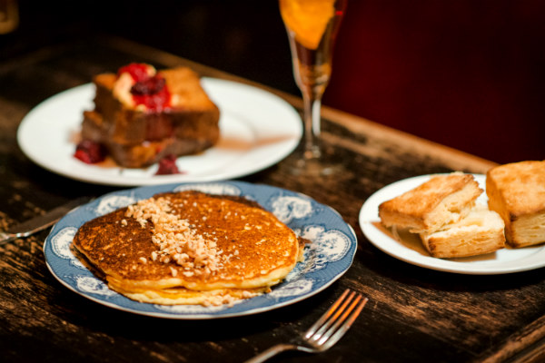 At its foundation, the Pikey is a traditional English pub, with burgundy walls, red leather booths, and subtle lighting. Visitors can take a seat in the dining room or the pub room, and larger parties can reserve the Maharaja room for private events.