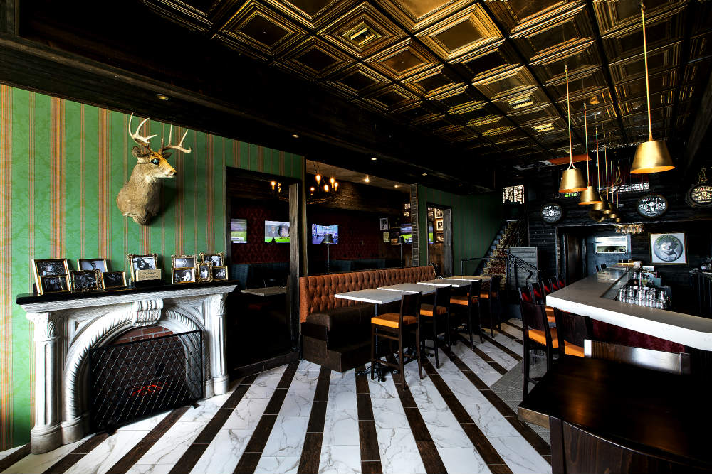 After a brief respite, the neighborhood staple has opened its doors to feature a large, white marble bar top that blends in perfectly with the bar’s new espresso colored wood furnishings. A massive stone fireplace will flank one of the walls while a vibrant wallpaper pattern has replaced the bar’s old wall coverings. The floor boasts a zebra-like pattern made with interconnecting slabs of white marble and dark wood. High-backed booths, all lit by an updated LED lighting system, will line the bar to give a more chic and polished presence than its predecessor.