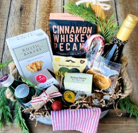 Make your favorite foodie’s holiday unforgettable with this elegant Foodie Celebration Gourmet Wine Basket from Nifty Package Co is a show-stopping choice that combines elegance and indulgence. Packed with an assortment of best-selling gourmet treats, this basket includes something for everyone to enjoy. For the adults, a bottle of Josh Chardonnay adds a touch of sophistication, while a beautifully handcrafted olive wood board makes serving a breeze. The presentation is equally impressive, with everything arranged in a large galvanized metal tub featuring rope handles for a rustic yet stylish look. Festive holiday embellishments and a handwritten note add a personal and thoughtful touch, making this gift as delightful to receive as it is to open. Perfect for gatherings or intimate celebrations, this basket guarantees to impress and satisfy any palate. $200. Shop Now