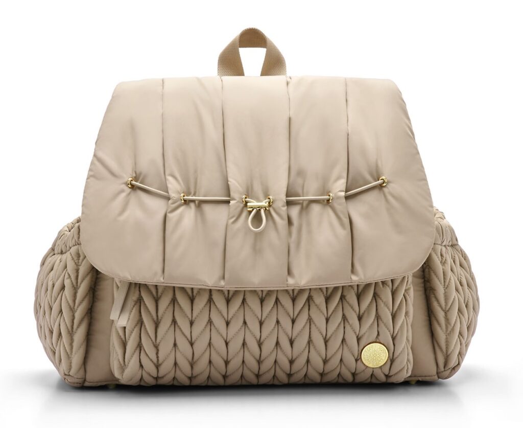 HAPP Brand’s signature aesthetic is rooted in its lightweight, 3D herringbone quilted nylon. The material not only feels soft and stylish, but also makes the bags up to 30 percent lighter than traditional options. This design detail matters when you’re juggling bottles, snacks, toys, and the occasional tantrum in a parking lot.